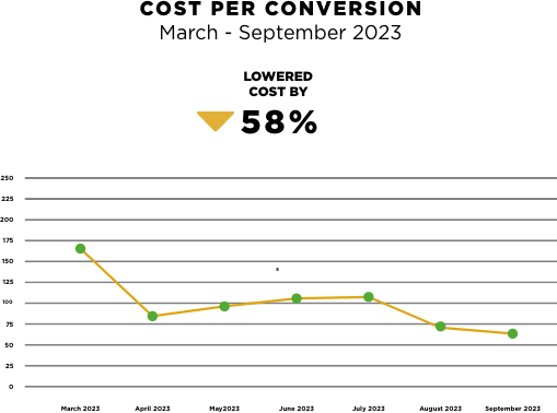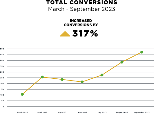 To drive immediate results, we implemented a lead generation plan using Google Ads. Our team launched highly targeted PPC campaigns, focusing on high-intent search terms and refining ad copy and landing pages to boost performance. The result? A 317% increase in overall conversions within six months, and a 58% reduction in cost per lead.