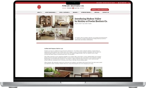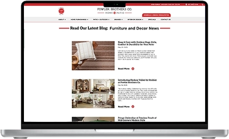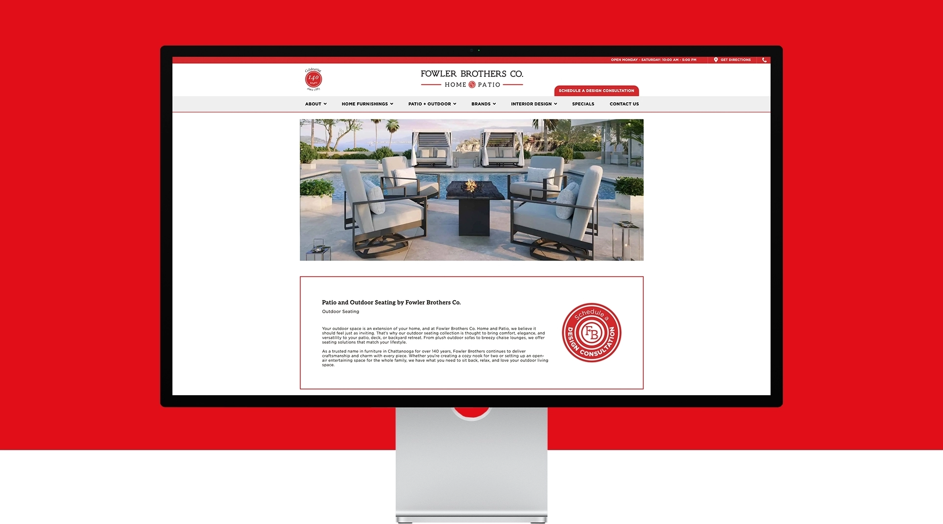 Following the successful rebrand, our next challenge was to reintroduce Fowler Brothers to the local community and expand its digital footprint. As the company’s exclusive marketing partner, we developed and executed a comprehensive marketing strategy that positioned Fowler Brothers as the region’s premier destination for home and patio furnishings. Our continued efforts have strengthened their online presence and brought customers, both new and returning through their doors from all over the region.