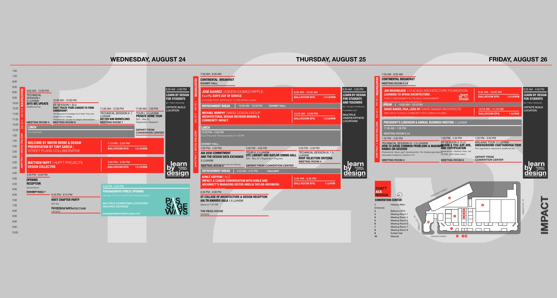 With a strong foundation in architecture, our team was uniquely positioned to take on the AIA Tennessee convention. Collaborating closely with event leaders, we developed the year’s central theme, “Impact” — exploring how thoughtful design shapes urban landscapes and creates meaningful connections with communities.