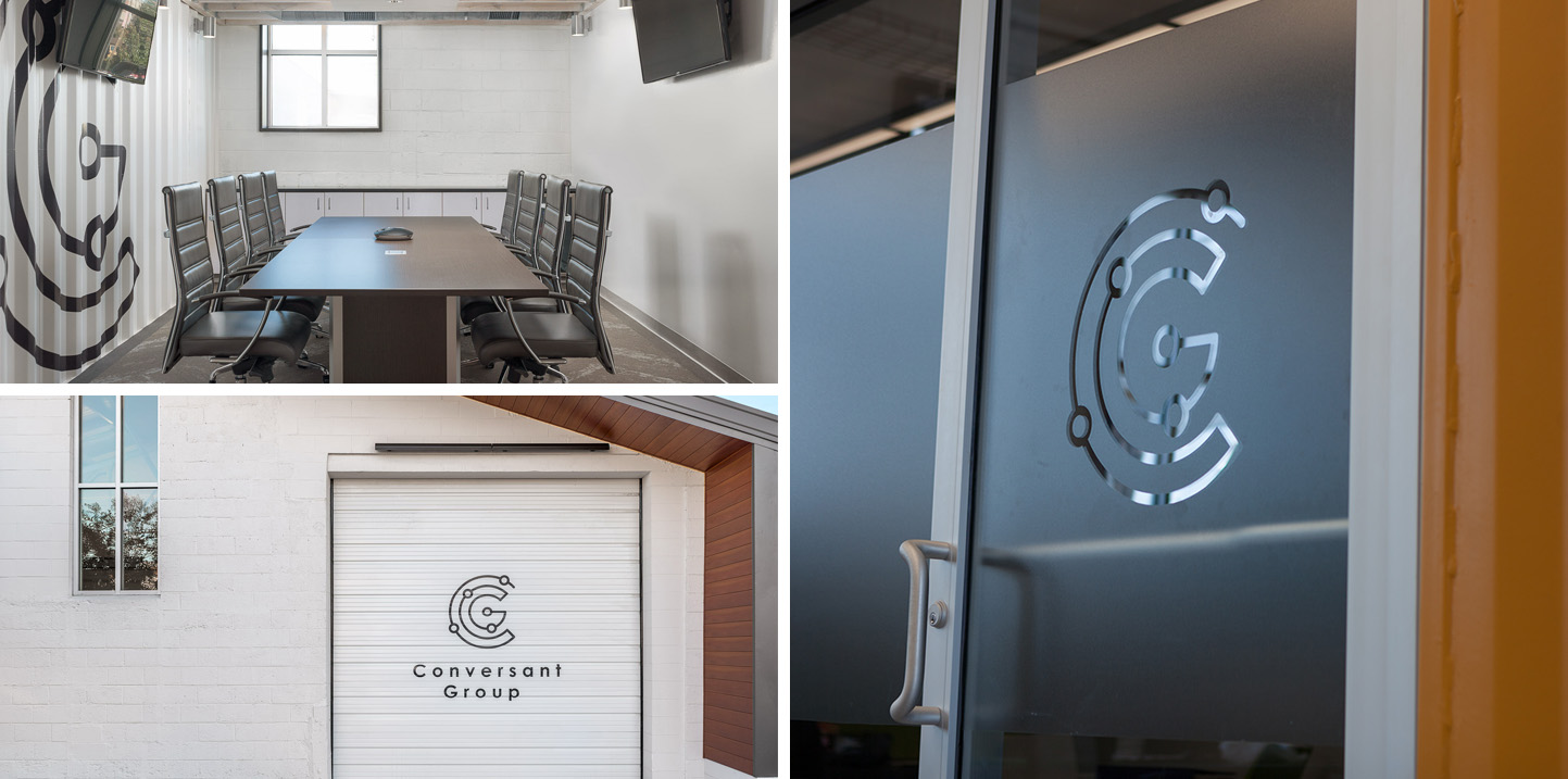 Our team started by developing a brand new logo to energize their brand. We took the time to understand every part of their business and the passion they have for their work. After creating several ideas, we landed on a logo that perfectly represents all the complex elements involved in IT infrastructure, distinctly marked as Conversant Group. As part of this branding process, we also worked with the architects of their new office space, applying the new brand and colors throughout their physical environment with signage.