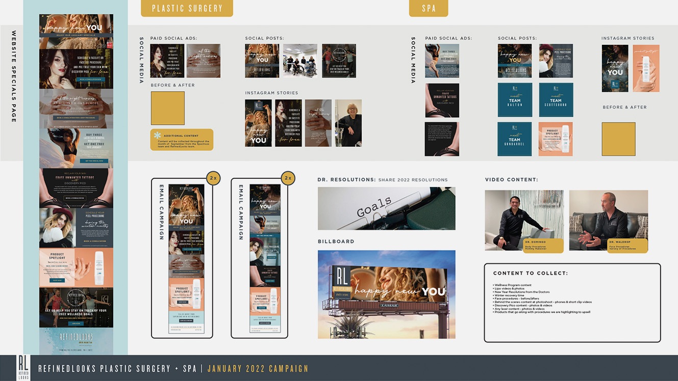Our team produced full campaign content, managed social media promotions, print campaigns, directed branded photo shoots with their team, filmed educational videos with surgeons and aestheticians, crafted targeted email campaigns, designed multiple billboards, both digital and print, and supported seasonal event marketing from concept to execution.