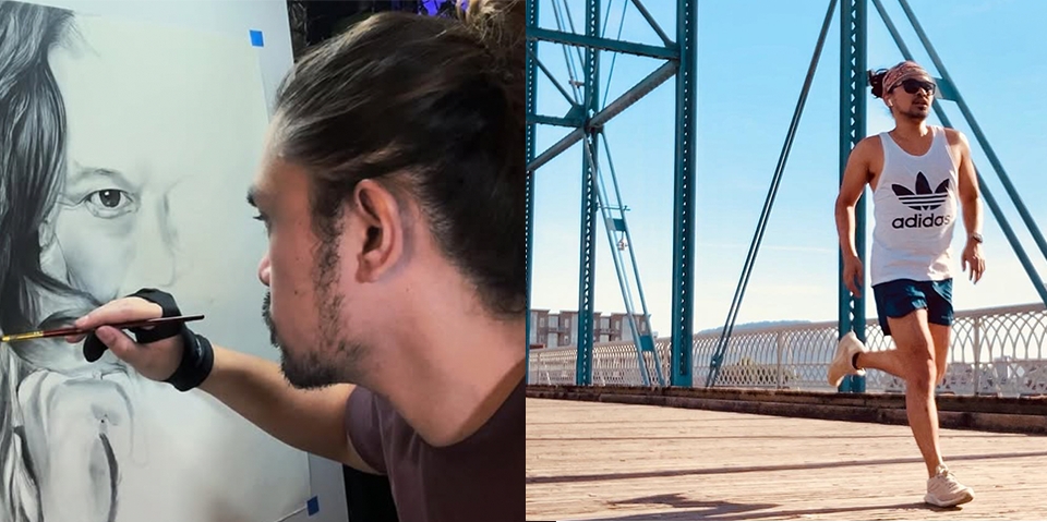 After hours, you’ll find him out for a run, lifting heavy objects, making social content for his influencer dog, outdoor and indoor gardening and learning the art of bonsai. Post 2020, Justin has been a part of an online community where he actively participates in growing streaming platforms for artists and has been slowly working behind the canvas on his own art as well.